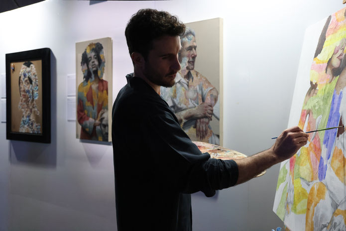 At the same time, in this space, not only were some of his paintings exhibited, but the artist also painted one of his latest works live, allowing the spectators to see part of his creative process.